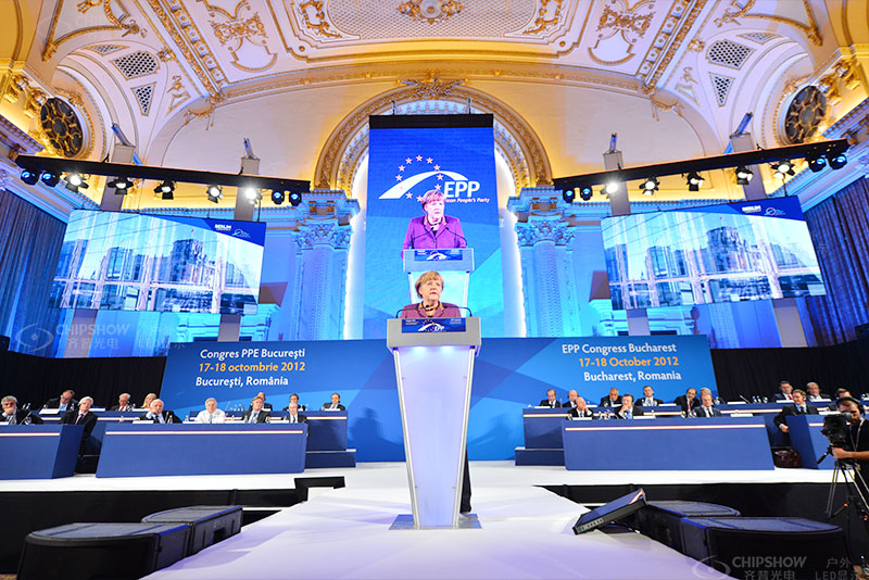 比利时_欧盟EPP会议 室内P5会议用LED显示屏,德国默克尔总理发表重要讲话