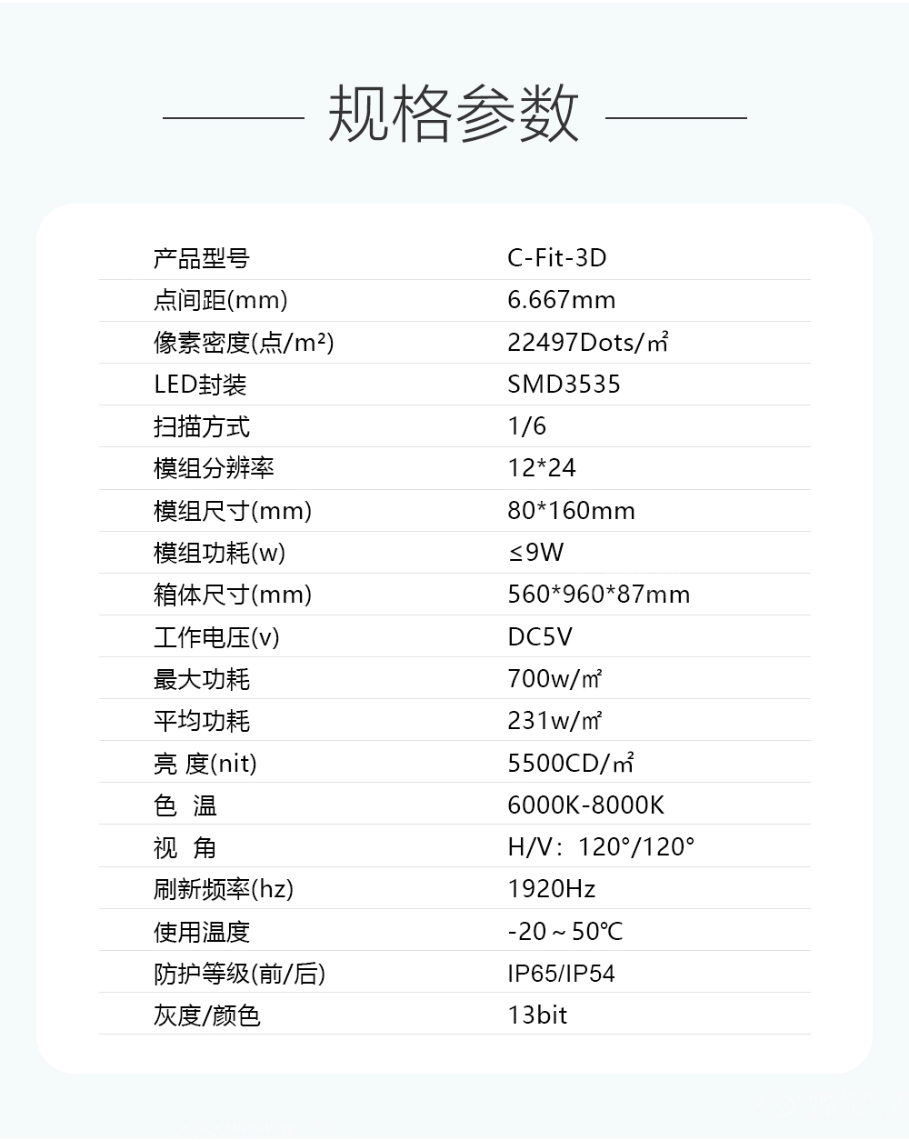 尺寸:模组:80*160mm;箱体:560*960*87mm